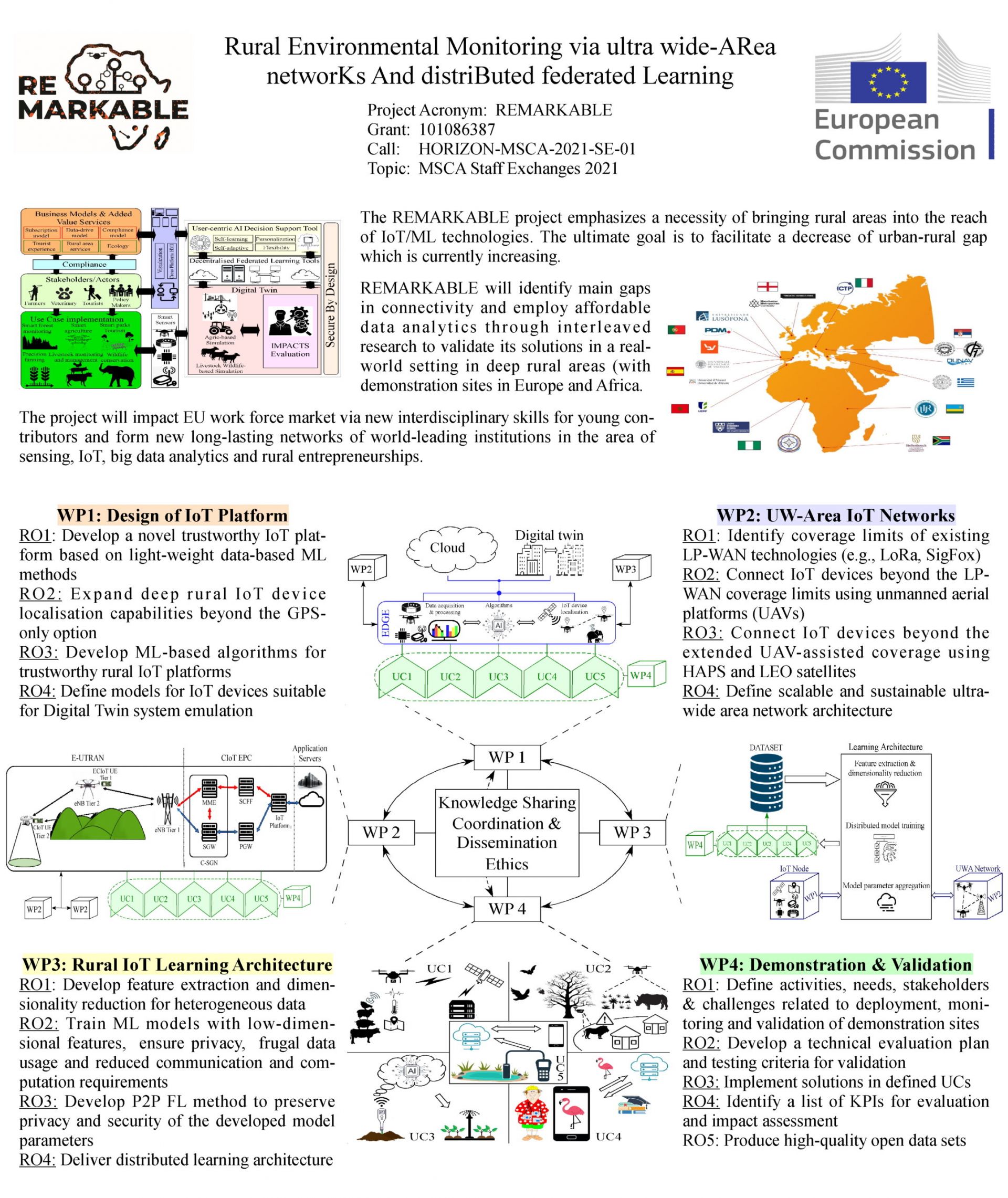 REMARKABLE is centred on an IoT/ML-based technological platform that will be adapted and demonstrated in the context of various cases applied in environmental monitoring, management and conservation, in order to demonstrate its simplicity, low costs and viability.